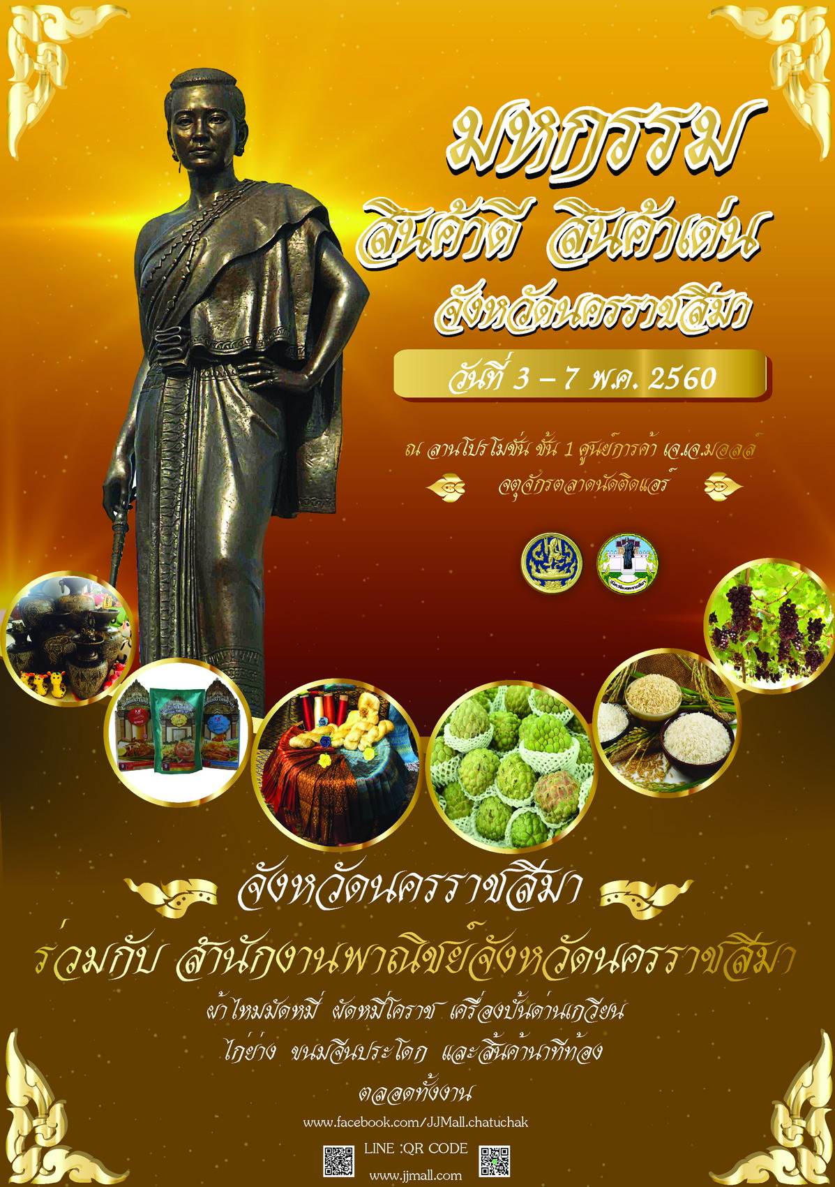 ศูนย์การค้า เจ เจ มอลล์ ร่วมกับสำนักงานพาณิชย์จังหวัดนครราชสีมา จัดงาน " มหกรรมสินค้าดี สินค้าเด่น จังหวัดนครราชสีมา" โดยภายในงานจะได้พบกับสินค้ามีชื่อเสียงของจังหวัด อาทิ ไก่กะเต็ด, หมูอบโอ่ง, เนื้อโคราชวากิว, ปลาส้มไร้ก้างสูตรสมุนไพร, หมี่โคราช, ผ้าไหมหางกระรอก และสินค้าอื่นๆ อีกมากมาย นอกจากนี้ยังมีกิจกรรมพิเศษตลอดการจัดงาน