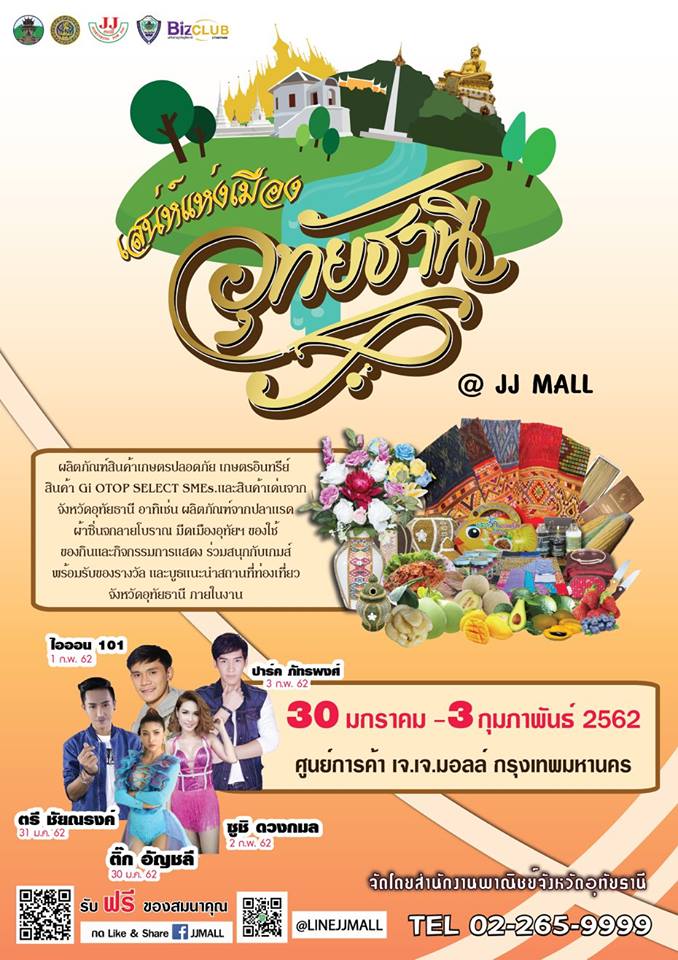เชิญมาค้นหาเสน่ห์ของจังหวัดอุทัยธานีกันได้ที่ #JJMALL ลานโปรโมชั่น ชั้น 1 ระหว่างวันที่ 30 ม.ค. – 3 ก.พ. 62 งานนี้รวบรวมผลผลิต สินค้าขึ้นชื่อจากทั่วทั้งจังหวัดอุทัยธานีมาไว้ที่เดียว