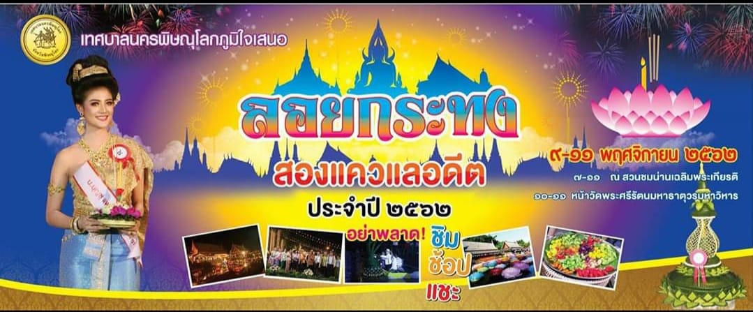 จังหวัดพิษณุโลก โดยเทศบาลนครพิษณุโลก วัดพระศรีรัตนมหาธาตุวรมหาวิหาร สภาวัฒนธรรมจังหวัดพิษณุโลก พร้อมหน่วยงานต่างๆ และประชาชนชาวจังหวัดพิษณุโลกได้ร่วมกันจัดงานลอยกระทงสองแควแลอดีต ประจำปี 2562 ขึ้น เพื่อฟื้นฟู ส่งเสริม สืบทอด และรักษาประเพณีอันดีงามของไทยเราไว้ อีกทั้งเป็นการส่งเสริมการท่องเที่ยวของจังหวัดพิษณุโลก และการท่องเที่ยวภายในประเทศให้แพร่หลายยิ่งขึ้น โดยแบ่งพื้นที่การจัดงานเป็น 4 โซนใหญ่ มีทั้ง บริเวณหน้าวัดพระศรีรัตนมหาธาตุวรมหาวิหารจะมีการจัดเป็นลานกระทง ส่วนถนนหน้าพระวิหารพระพุทธชินราชก็จะเป็นถนนลอยกระทงสองแควแลอดีต ส่วนบริเวณฝั่งศาลหลักเมือง ก็จะเนรมิตให้เป็นเวทีกลางแม่น้ำน่านขนาดใหญ่ เพื่อทำพิธีเปิดงานลอยกระทงสองแควแลอดีต แทนบริเวณฝั่งแม่น้ำด้านหน้าพระวิหารพระพุทธชินราช เนื่องจากกำลังดำเนินการปรับปรุงก่อสร้างภูมิทัศน์ใหม่ และยังไม่แล้วเสร็จ นอกจากนั้นการจัดงานยังคงเกิดขึ้นที่บริเวณสวนชมน่านเฉลิมพระเกียรติ และสวนกลางเมืองพิษณุโลก เป็นกิจกรรมมหกรรมอาหารอร่อยของจังหวัดพิษณุโลก มีกิจกรรมการจำหน่ายอาหารอร่อยไร้แอลกอฮอล์ การจำหน่ายสินค้าราคาถูก ซึ่งสามารถใช้เงินจากแอปเป๋าตังตามโครงการ ชิมช๊อปใช้ ของรัฐบาลได้เป็นบางร้านค้า และยังมีการประกวดประดิษฐ์กระทงฝีมือ การประกวดร้องเพลงไทยลูกทุ่งและวงดนตรี การแสดงคอนเสิร์ต การประกวดขบวนแห่กระทงใหญ่เครือข่ายชุมชน ไฮไลท์ของงานก็เป็นคืนวันลอยกระทง พบกับขบวนแห่กระทงใหญ่ รอบเมืองพิษณุโลก และประกวดนางนพมาศ การประกวดหนูน้อยนพมาศ บริเวณเวทีกลางแม่น้ำน่าน ภายในวัดพระพุทธชินราช ก็เปิดโอกาสให้พุทธศาสนิกชนได้เข้าไปสักการะพระพุทธชินราชภายในพระวิหาร พร้อมเที่ยวงานวัดในอดีต รำวงย้อนยุค การละเล่นเด็กไทย ลิเก ภาพยนตร์กลางแปลง ชิงช้า ม้าหมุน และการละเล่นต่างๆ ชิมอาหารพื้นบ้านเมืองพิษณุโลก การจุดพลุเฉลิมฉลอง การปล่อยกระทงสายไหลประทีป และการปล่อยโคมลอย