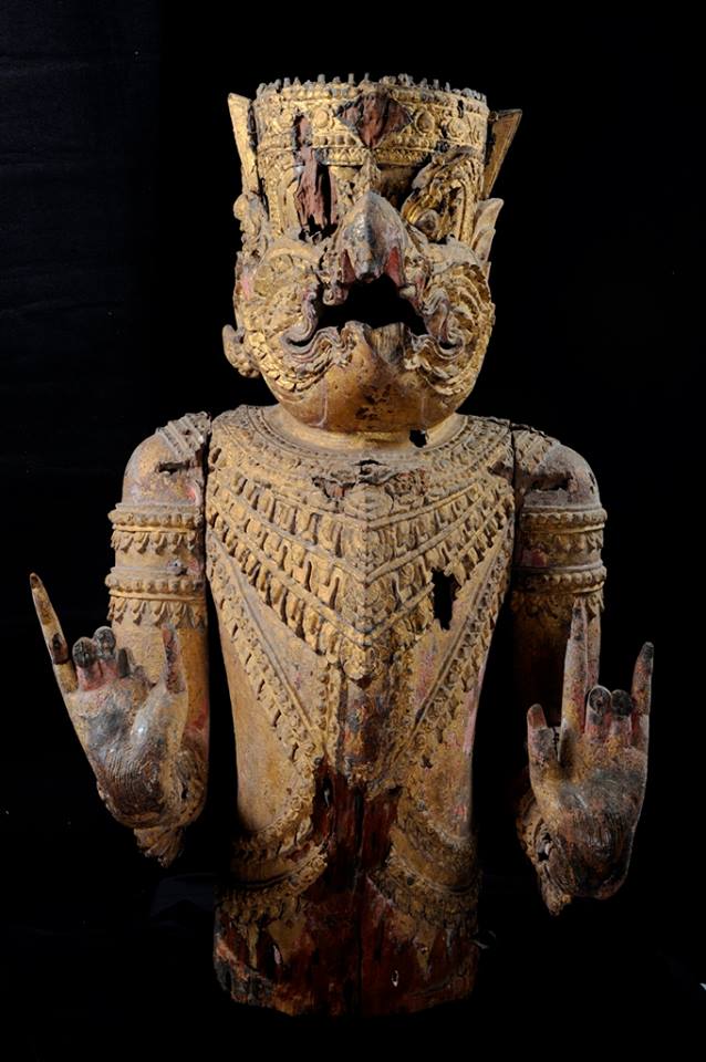 โขนเรือรูปครุฑ ศิลปะอยุธยา อายุราว 300-400 ปี โขนเรือนี้จัดแสดงในพิพิธภัณฑสถานแห่งชาติ เจ้าสามพระยา จังหวัดพระนครศรีอยุธยา มือทั้งสองข้างก็แสดงท่าคล้ายหูของสิงห์