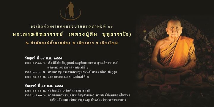 ขอเชิญร่วมงานครบรอบวันมรณภาพปีที่ 20 พระญาณสิทธาจารย์ (หลวงปู่สิม พุทฺธาจาโร)