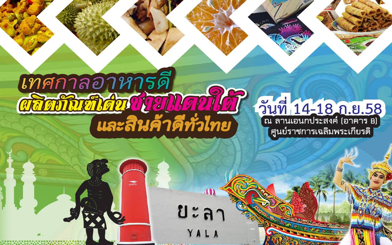 ขอเชิญเที่ยวงานเทศกาลอาหารดี ผลิตภัณฑ์เด่นชายแดนใต้และสินค้าดีทั่วไทย วันที่ 14-18 กันยายน 2558 เวลา 09.00 - 17.00 น. ณ ลานอเนกประสงค์ ชั้น 2 อาคารรัฐประศาสนภักดี(B) ศูนย์ราชการฯ แจ้งวัฒนะ