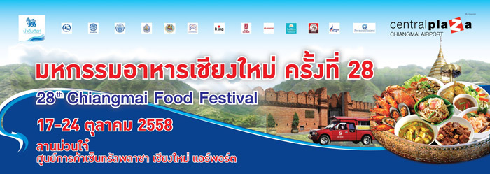 ชมรมภัตตาคารและร้านอาหารจังหวัดเชียงใหม่ ร่วมกับ ททท.สำนักงานเชียงใหม่ สิงห์คอร์เปอร์เรชั่นและศูนย์การค้าเซ็นทรัลพลาซา เชียงใหม่แอร์พอร์ต เชิญเที่ยวและชิมในงานมหกรรมอาหารครั้งที่ 28 (28th Food Festival )พบกับร้านอาหารหลากหลายเมนู กว่า 60 ร้านค้า พร้อมกับร่วมชมคอนเสิร์ตจากศิลปินชื่อดังที่ยกขบวนมามอบความสุขให้ชาวเชียงใหม่อย่างคับคั่ง