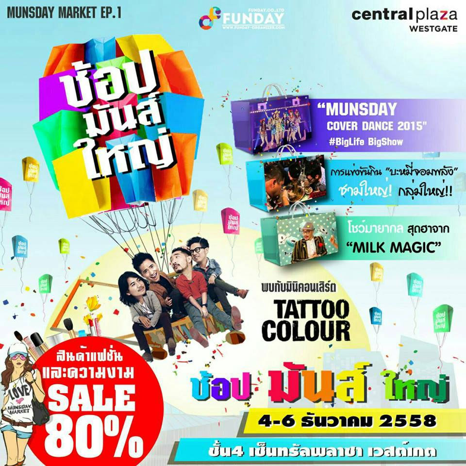 พบกัน วันที่ 4-6 ธันวาคม 2558 @ เวสท์เกตฮอลล์ ชั้น4 เซ็นทรัลพลาซ่า เวสท์เกต ศูนย์การค้าที่มีผู้คนเดินจับจ่ายสินค้ามากที่สุดในประเทศไทย