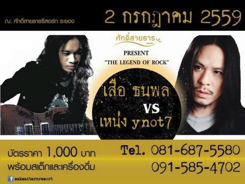 เตรียมตัวพบกับ เสือ ธนพล และ เหน่ง Y not 7 ได้ที่ ศักดิ์สายธาร รีสอร์ท จ.ระยอง ในวันที่ 2 กรกฎาคม 2559. บัตรราคา 1,000 บาท พร้อมสเต็กและเครื่องดื่ม