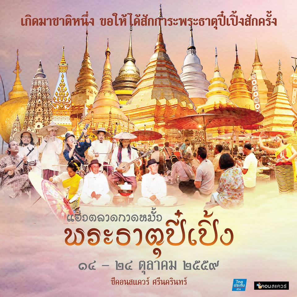 “ซีคอนสแควร์” ร่วมกับ ไทยประกันชีวิต จัดงาน “แอ่วตลาดกาดหมั้ว พระธาตุปี๋เปิ้ง” เกิดมาชาติหนึ่ง ขอให้ได้สักการะพระธาตุปี๋เปิ้งสักครั้ง ชวนร่วมสรงน้ำพระธาตุประจำปีนักษัตร เนรมิตองค์พระธาตุ 12 นักษัตรมาไว้ในแห่งเดียว ให้ได้บูชาเพื่อเสริมสิริมงคลตามประเพณี พร้อมดื่มด่ำมนต์เสน่ห์แห่งกาดล้านนาโบราณ ลิ้มรสอาหารพื้นบ้าน เลือกซื้อหัตถกรรมพื้นเมือง และตื่นตากับการแสดงวัฒนธรรมท้องถิ่น ตั้งแต่วันที่ 14-24 ตุลาคม 2559 ณ ลานน้ำพุ ชั้น 1 ศูนย์สรรพสินค้าซีคอนสแควร์ ถนนศรีนครินทร์