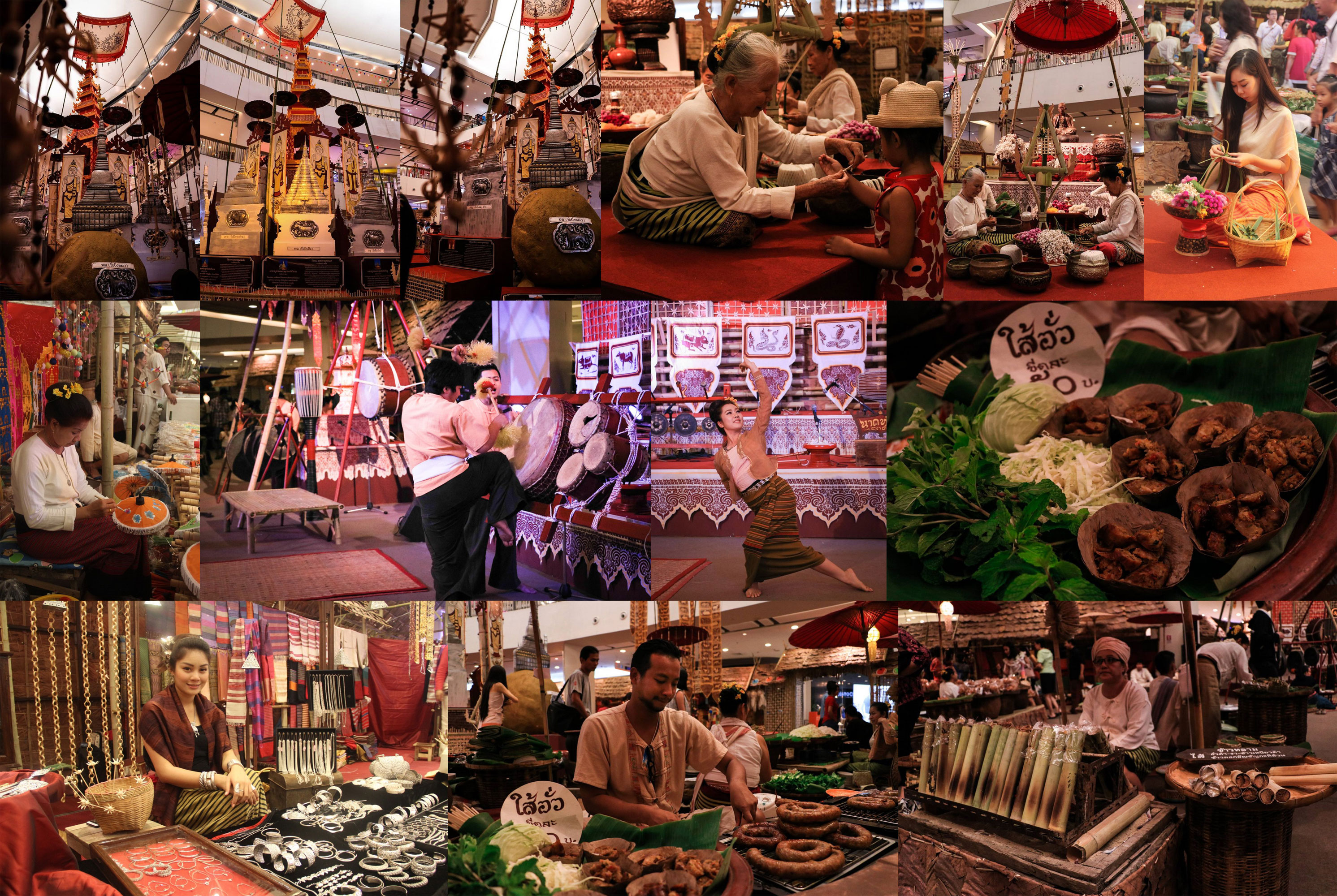 นอกจากนี้ ภายในงาน ยังได้เนรมิตกาดล้านนาโบราณ ให้ลูกค้าได้สัมผัสกับบรรยากาศ เลือกซื้อ และชิมอาหารพื้นเมือง อาทิ แกงโฮะ, แกงฮังเล, แอ็บอ่อง, อองหมู, แอ็บหมูจิ๊นหมก, จิ้นส้ม(แหนม), น้ำพริกอ่อง, ไข่ป่าม, ขนมปาด และขนมเกลือ โดยลูกค้าที่เลือกซื้ออาหารภายในงาน สามารถนั่งรับประทานอาหารบนขันโตกที่จัดเตรียมไว้ รวมถึงเลือกซื้อสินค้าหัตถกรรม ของใช้ ของฝากต่าง ๆ อาทิ ผ้าทอล้านนา เครื่องเงิน ไม้แกะสลัก ภาพวาดล้านนา เพลงคลาสสิกล้านนา ฯลฯ พร้อมชมการแสดงวัฒนธรรมพื้นบ้านล้านนา ศิลปินพื้นบ้านล้านนา วงดนตรีเดอะสะล้อ นำโดย ครูแอ๊ด ภานุทัต อภิชนาธง บุคลากรดีเด่นทางด้านวัฒนธรรม ไม่ว่าจะเป็นบทเพลงพื้นเมืองล้านนา, ฟ้อนไต, เต้นโต, ฟ้อนดาบ, วงดนตรี จิตวิญญาณแห่งล้านนา นำโดย ผศ.สล่าบุญรัตน์ ณ วิชัย ฯลฯ ชมนิทรรศการเจ้าจันทร์ผมหอม จัดแสดงเรื่องราวของเจ้าหญิงล้านนา นามว่า "เจ้าจันท์" ที่เดินทางไปสักการะพระธาตุอินทร์แขวนตามความเชื่อเรื่องพระธาตุประจำปีเกิดของชาวล้านนา โดยหวังว่าจะเอาผมหอมที่ตนบำรุงรักษาอย่างดีมา 5 ปีไปลอดพระธาตุอินทร์แขวน มีความเชื่อที่เชื่อสืบกันมาว่า ผู้ใดปูผมลอดพระธาตุอินทร์แขวนได้ จะได้ทุกอย่างตามที่ปรารถนา และซุ้มสาธิต การเขียนปี๋เปิ้ง งานเขียนเชิงช่างโบราณด้วยเทคนิคกระจก, การทำเครื่องสักการะ พระธาตุ งานดอกผึ้ง การทำเครื่องสักการะล้านนา ประกอบไปด้วย หมาก สุ่ม หมากเบ็ง ต้นเผิ้ง ต้นดอก, งานปักผ้าตัวเปิ้ง งานกลุ่มสล่าล้านนา รวมผลงานหัตถกรรมช่างสิบหมู่ล้านนา เป็นงานวาด งานไม้ งานผ้า, การทำร่ม และงานไม้ไผ่สาน