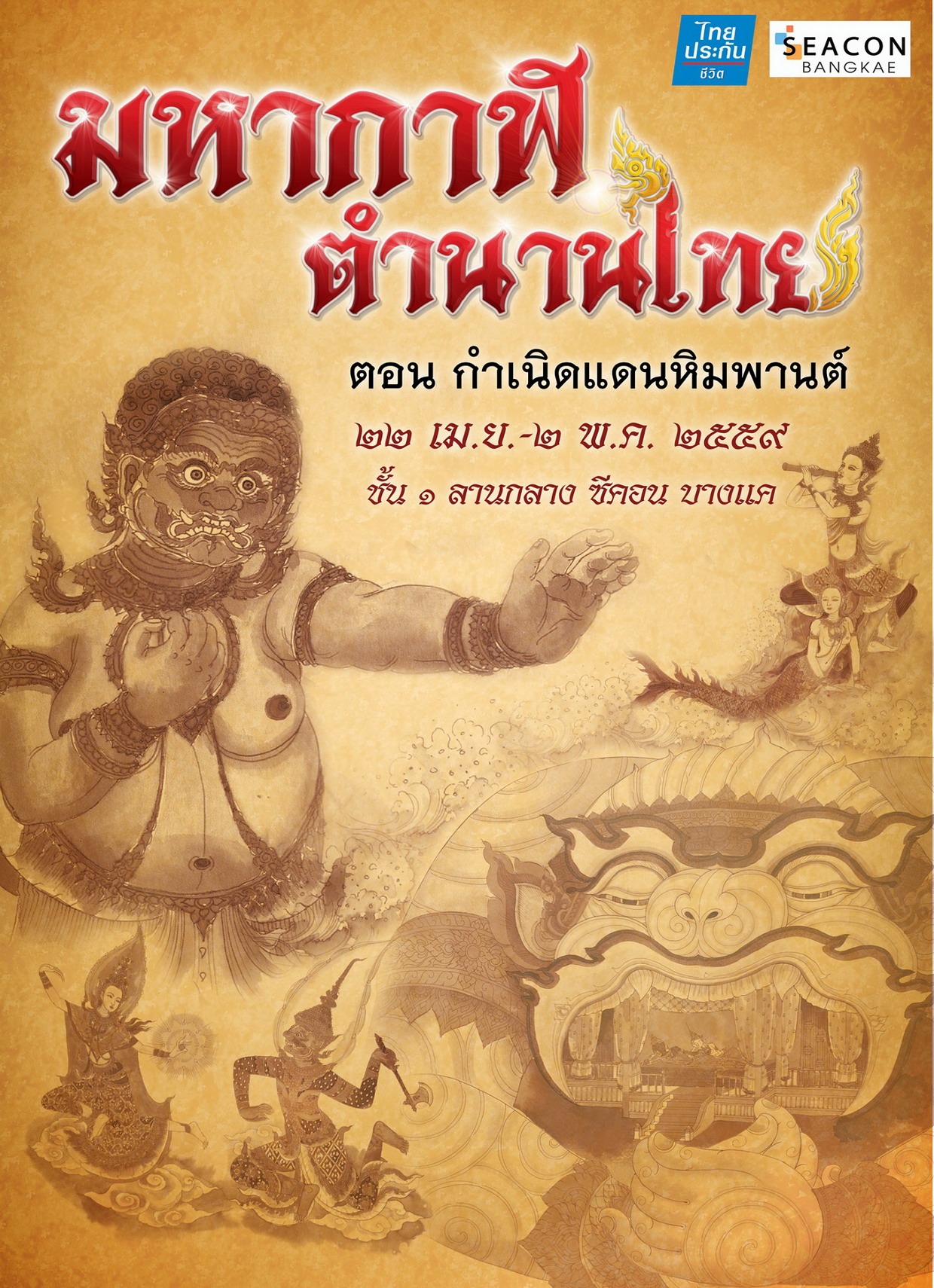 ม.ล.จิระเดช กมลาศน์ ผู้จัดการฝ่ายประชาสัมพันธ์ บริษัท ซีคอน บางแค จำกัด ผู้บริหารศูนย์สรรพสินค้าซีคอน บางแค เปิดเผยว่า บริษัทฯ ได้ร่วมกับ บริษัท ไทยประกันชีวิต จำกัด (มหาชน) จัดงาน “มหากาฬ ตำนานไทย” ตอนกำเนิดแดนหิมพานต์ ขึ้นระหว่างวันที่ 22 เมษายน – 2 พฤษภาคม 2559 ณ ลานกลาง ชั้น 1 ศูนย์สรรพสินค้าซีคอน บางแค ถนนเพชรเกษม เพื่ออนุรักษ์ความงดงามของวรรณคดีไทยที่สืบสานกันมาจากรุ่นสู่รุ่น โดยได้เนรมิตพื้นที่กว่า 1,000 ตารางเมตร ให้ลูกค้า และประชาชนทั่วไป ได้ท่องไปในโลกวรรณคดีไทย อาทิ รามเกียรติ์, พระอภัยมณี, สังข์ทอง, ชาละวัน, อุทัยเทวี, กินนรี, แก้วหน้าม้า, เงาะป่า, พระเวสสันดรชาดก ฯลฯ ภายใต้บรรยากาศของดินแดนหิมพานต์ จำลองสถานที่สำคัญในวรรณคดีมาให้ได้สัมผัส อาทิ เกาะแก้วพิสดาร ถ้ำชาละวัน น้ำตกกินรี ฯลฯ พร้อมจัดสร้างรูปปั้นตัวละครหลัก และสัตว์ในวรรณคดีของแต่ละเรื่อง เช่น ผีเสื้อสมุทร ที่มีความสูงขนาด 5 เมตร อาทิ มัจฉานุ, หนุมานพลับพลา จากรามเกียรติ์, เมขลาล่อแก้ว, พญาครุฑ, ชาละวัน, อุทัยเทวี สังข์ทอง, พระอภัยมณี, สุดสาคร, แก้วหน้าม้า, เงาะป่า, นางอุทัยเทวี, ชาละวัน, ทศกัณฑ์, หนุมาน, ขวานฟ้าหน้าดำ และกินรี