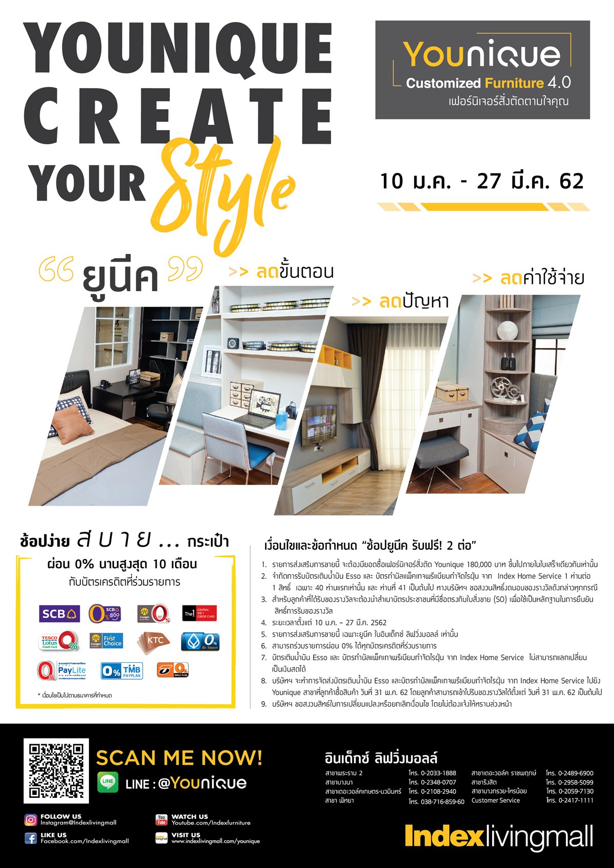 สอบถามโทร. 02-417-1111 หรือ https://younique.indexlivingmall.com , Line@ : @Younique (สอบถามเงื่อนไขและรายละเอียดสินค้าเพิ่มเติม ณ จุดขาย)