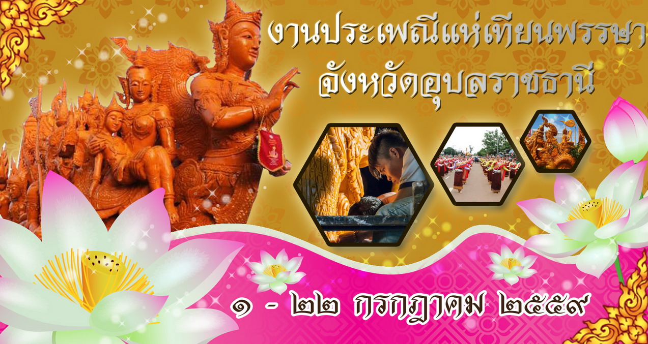- เวลา 10.30-21.00 น. กิจกรรมงานมหัศจรรย์เทียนพรรษา Miracle of candle ประติมากรรมเทียนหอมสีขาวแห่งเดียวในอีสาน ณ เซ็ลทรัลพลาซ่า อุบลราชธานี