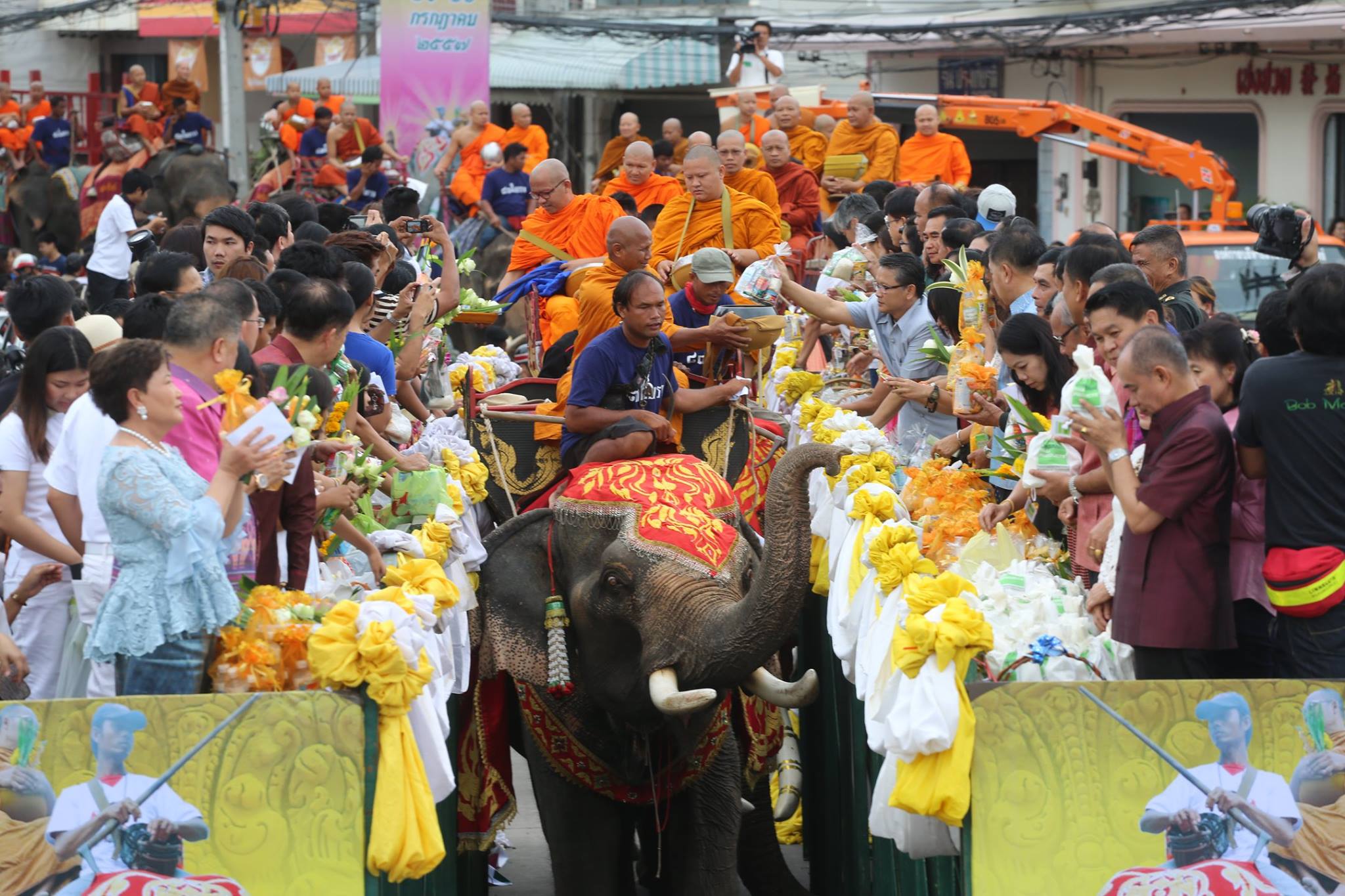 19 ก.ค. 59 : เวลา 07.00 น. ร่วมทำบุญตักบาตรบนหลังช้างหนึ่งเดียวในโลก โดยมีพระเถระชั้นผู้ใหญ่นั่งบนหลังช้างออกรับบิณฑบาตแก่นักท่องเที่ยวให้ได้ร่วมใส่บาตรกันถ้วนหน้า