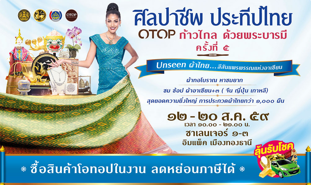 นิทรรศการเทิดพระเกียรติ การจำหน่ายผลิตภัณฑ์โอทอป Unseen ผ้าไทย สีสันแพรพรรณแห่งอาเซียน