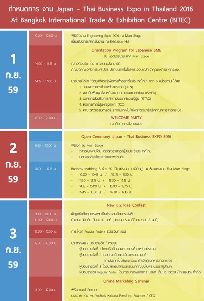 หมายเหตุ : งาน Japan - Thai Business Expo in Thailand 2016 จัดร่วมในงาน วิศวะ'59 - Engineering Expo 2016