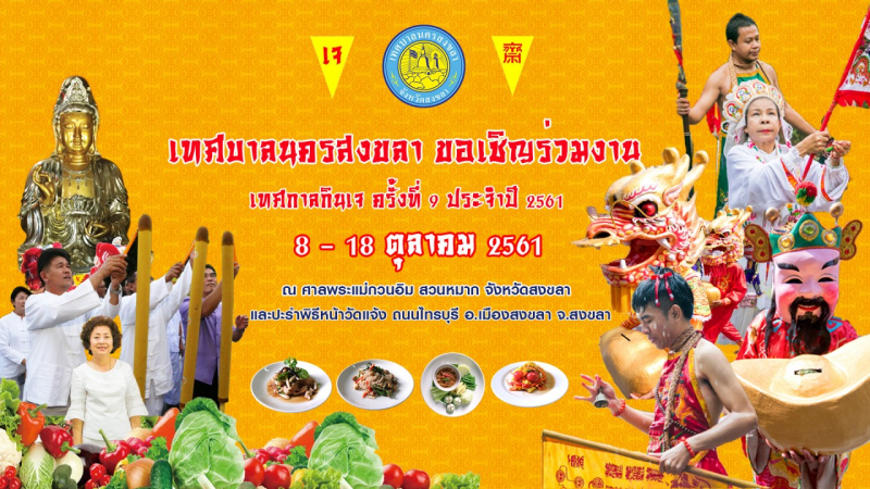 เทศบาลนครสงขลา ร่วมกับ ศาลพระแม่กวนอิมสวนหมาก พระตำหนักกวนซีอิมผ่อสัก เคหะสถานครูไทย และ 5 สมาคมจีน สงขลา ศาลเจ้าต่างๆ ในเขตเทศบาลนครสงขลา กำหนดจัดงานเทศกาลกินเจ ครั้งที่ 9 ประจำปี 2561 ระหว่างวันที่ 8 -18 ตุลาคม 2561 ณ ศาลพระแม่กวนอิมสวนหมาก และปะรำพิธีหน้าวัดแจ้ง ถนนไทรบุรี โดยกำหนดพิธีเปิดในวันพฤหัสบดีที่ 11 ตุลาคม 2561 และมีขบวนแห่พระรอบเมืองสงขลา ในวันจันทร์ที่ 15 ตุลาคม 2561