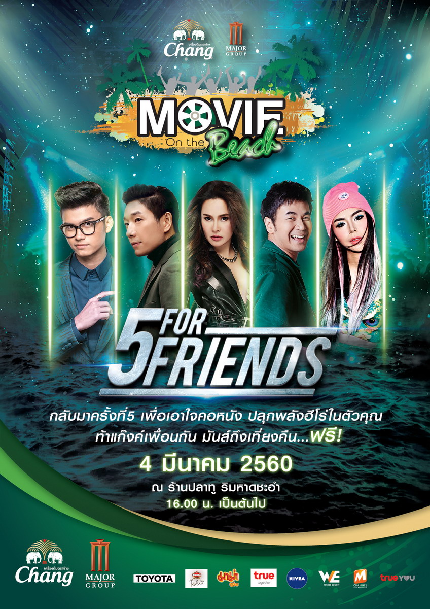 เครื่องดื่มตราช้าง ร่วมกับ เมเจอร์ ซีนีเพล็กซ์ กรุ้ป แทคทีมมอบประสบการณ์ความมันส์กับศิลปินแถวหน้าของเมืองไทยอย่างต่อเนื่อง เตรียมจัดงาน "Chang – Major Movie on the Beach ครั้งที่ 5 ในตอน 5 For Friends" ท้าแก็งค์เพื่อนกัน มันส์ถึงเที่ยงคืน ฟรี! ภายใต้คอนเซ็ปท์ "เอาใจคอหนังปลุกพลังฮีโร่" ในวันที่ 4 มีนาคมนี้ ณ ริมชายหาดชะอำ (หน้าร้านปลาทู)