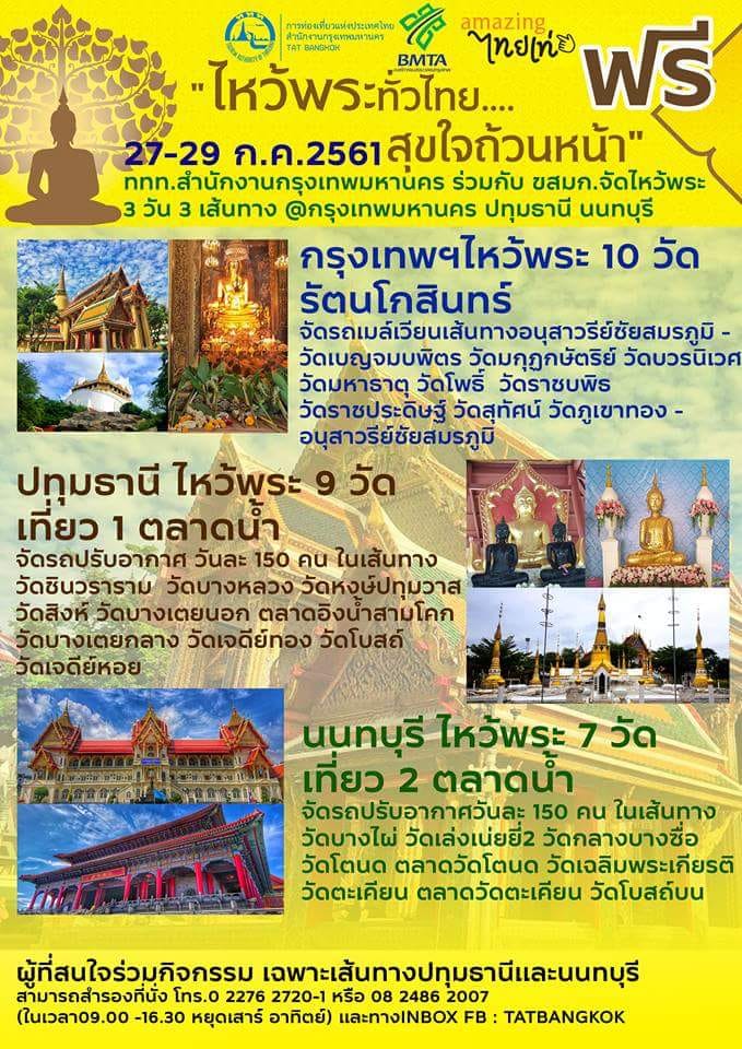 ททท.สำนักงานกรุงเทพมหานคร ร่วมกับ ขสมก.จัดรถปรับอากาศไหว้พระ รถออกจาก ขสมก.อู่หมอชิต2 ฟรี!