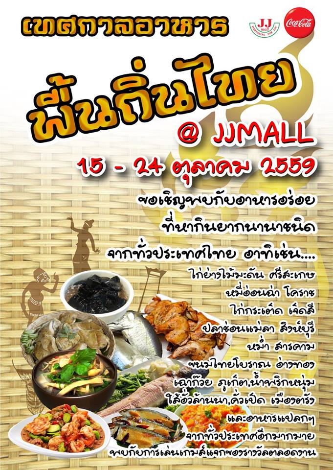 เจ เจ มอลล์ จตุจักรติดแอร์ จัดงาน “ เทศกาลอาหารพื้นถิ่นไทย ” ระหว่างวันที่ 15 – 24 ต.ค. 59 โดยภายในงานจะพบกับอาหารอร่อยที่หากินยากนานาชนิดจากทั่วทุกภาคของประเทศไทย สามารถมาชมงานได้ตั้งแต่เวลา 10.30 -19.00 น. เข้าชมฟรี