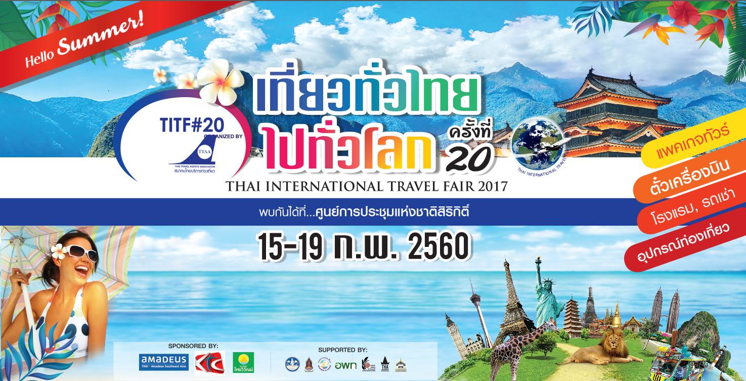 กลับมาอีกครั้งกับงาน "เที่ยวทั่วไทย ไปทั่วโลก ครั้งที่ 20" จัดเต็มทุกแพ็คเกจเที่ยวทั่วไทยในราคาประหยัดด้วยการเปิดประสบการณ์สัมผัสกับแหล่งท่องเที่ยว แหล่งพักผ่อนใหม่ๆ ทั้งในภาคเหนือ กลาง ใต้ จรดอีสาน มางานนี้แล้วคุณจะตกหลุมรักเมืองไทยมากกว่าเดิม ระหว่างวันที่ 15 - 19 กุมภาพันธ์ 2560 ณ ห้องเพลนารี 1 - 3 ห้องบอลรูมและโถงต้อนรับ อาคารนิทรรศการโซน ซี 1 - 2 บริเวณพลาซ่า และบริเวณเอเทรี่ยม ศูนย์การประชุมแห่งชาติสิริกิติ์