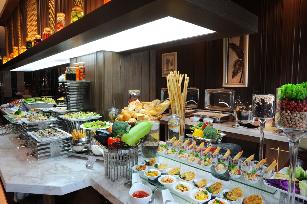 นอกจากอาหารบุฟเฟ่ต์นานาชาติหลายรสทั้งไทย จีน ญี่ปุ่น ฝรั่ง ตะวันออกกลาง อาทิ สลัดสไตล์ฝรั่งเศส เนื้อไก่ซอสเห็ด แกงกุรุหม่าไก่ ฯลฯ ยังจัดครบเครื่องเมนูคลายร้อนกับข้าวแช่ ที่มอบความสดชื่นกับข้าวสวยหอมเย็นในน้ำลอยมะลิ ทานกับเครื่องเคียง อาทิ ลูกกะปิทอด หอมแดง สอดไส้ พริกหยวกสอดไส้แน่นๆ เนื้อฝอย หัวไชโป๊วผัดไข่ ฯลฯ ปิดท้ายด้วยเมนูหวานข้าวเหนียวมะม่วง ข้าวเหนียวมูนสีสวยจากธรรมชาติและมะม่วงสุกหวานฉ่ำ โปรโมชั่นพิเศษ! มา 4 จ่าย 2 สำหรับบุฟเฟ่ต์มื้อกลางวัน ราคา 765 บาทสุทธิ/คน ระหว่างวันจันทร์-วันเสาร์ ที่ห้องดีวาน จนถึงวันที่ 15 พฤษภาคมศกนี้