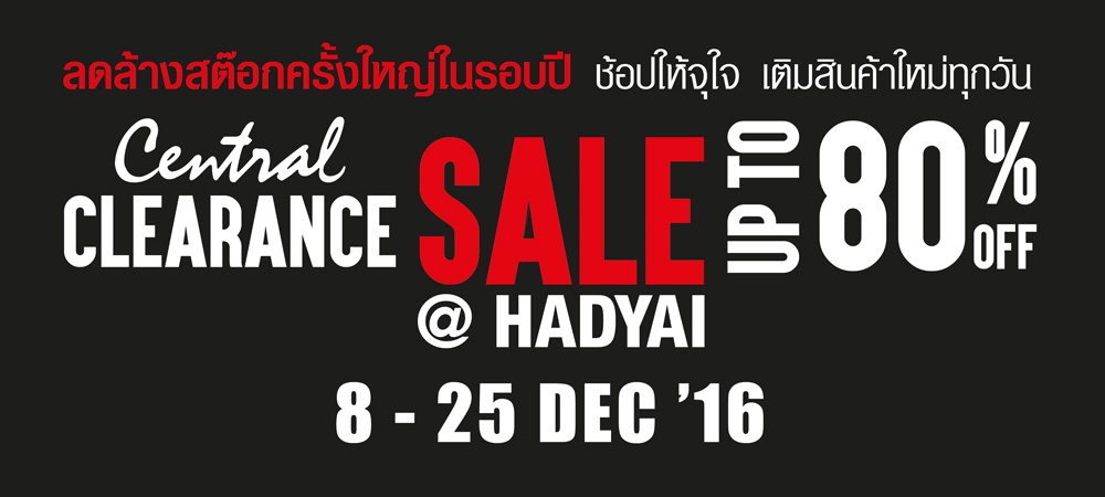Central Hadyai Clearance Sale ขนสินค้าแบรนด์ดังมาลดทั้งห้าง งานช้อปยิ่งใหญ่ส่งท้ายปี พลาดไม่ได้!!!