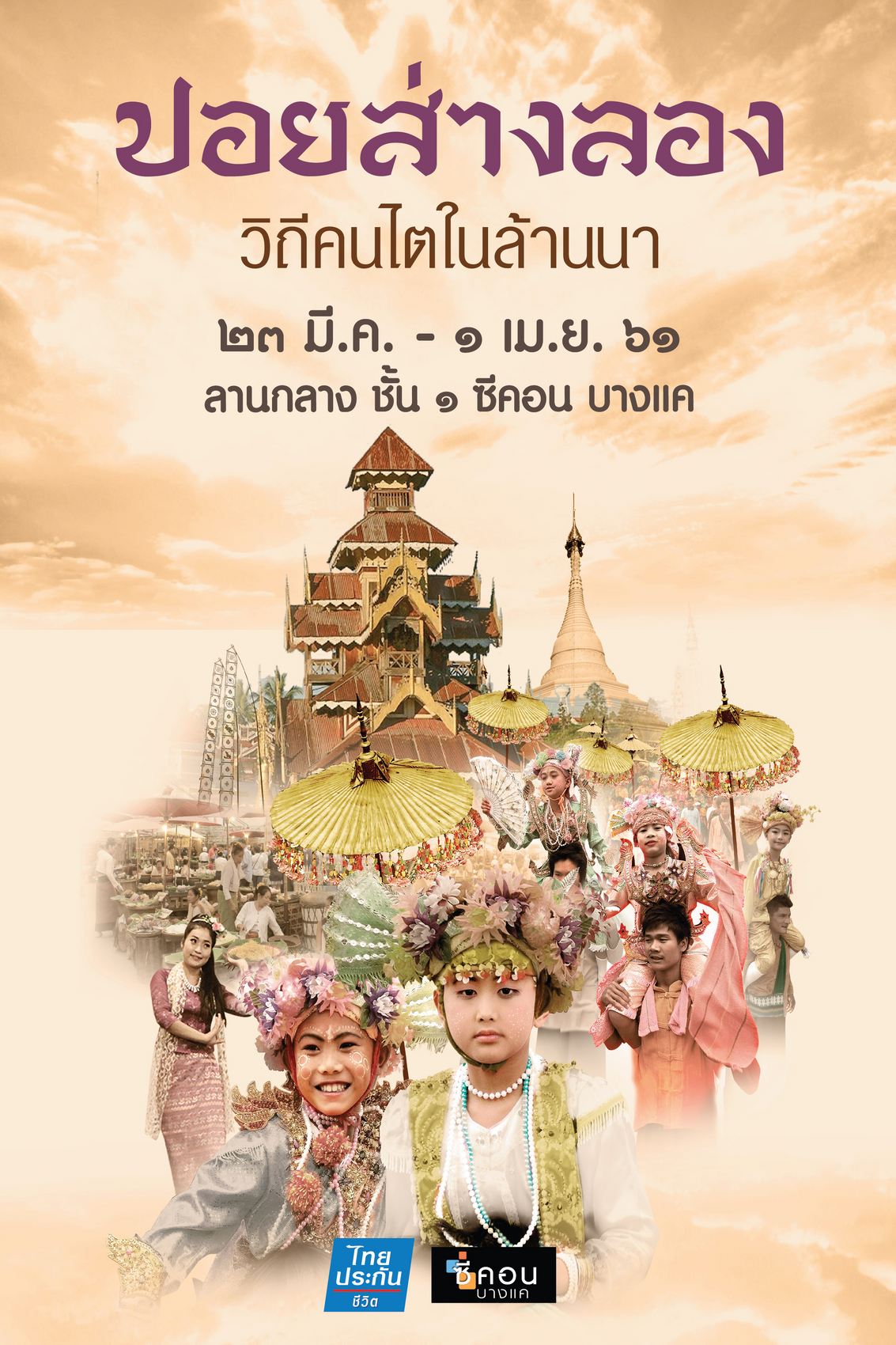 ซีคอน บางแค ร่วมกับ ไทยประกันชีวิต จัดงาน "ปอยส่างลอง" สืบสานประเพณีบรรพชาสามเณรแห่งเมืองสามหมอก ที่สืบทอดมาอย่างยาวนาน ท่ามกลางบรรยากาศการจำลองสถาปัตยกรรมแบบไทใหญ่สุดแสนวิจิตร ตระการตากับการแสดงศิลปวัฒนธรรมล้ำค่า ลิ้มรสอาหารพื้นเมืองในกาดโบราณ พร้อมชมสาธิตภูมิปัญญาท้องถิ่นฝีมือเชิงช่างหาชมยาก ระหว่างวันที่ 23 มีนาคม – 1 เมษายน 2561 ณ ลานกลาง ชั้น 1 ศูนย์สรรพสินค้าซีคอน บางแค ถนนเพชรเกษม