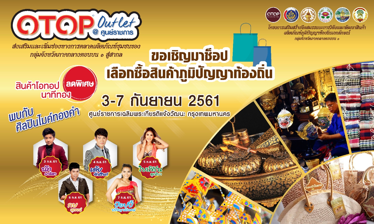 มางานเดียว ครบทุกรส ช็อป ชม ชิม กับงาน OTOP Outlet @ศูนย์ราชการ วันที่ 3 – 7 กันยายน 2561 เวลา 08.00 – 18.00 ณ ลานอเนกประสงค์ อาคารรัฐประศาสนภักดี ศูนย์ราชการแจ้งวัฒนะ โดยสำนักพัฒนาชุมชนจังหวัดพระนครศรีอยุธยา