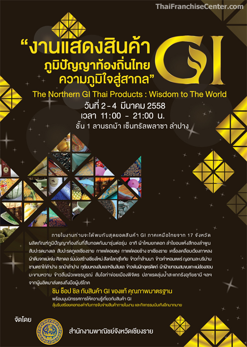 สำนักงานพาณิชย์จังหวัดเชียงราย ในฐานะพาณิชย์จังหวัดกลุ่มภาคเหนือ จัดงานแสดงสินค้า GI ภูมิปัญญาท้องถิ่นไทย ความภูมิใจสู่สากล (The Northern GI Thai Products: Wisdom to The World) ภายใต้โครงการส่งเสริมและพัฒนา�