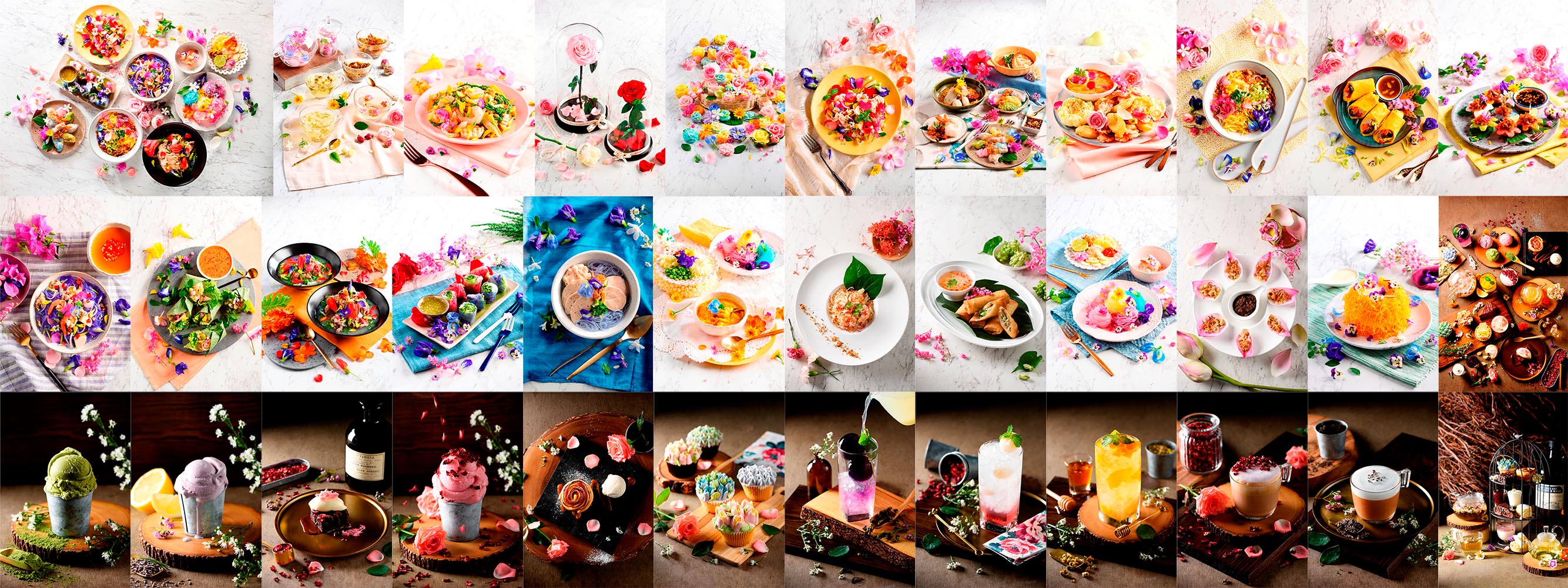 เริ่มกันที่ "Floral High Tea" รวบรวมของหวานที่ทำจากดอกไม้หลากหลายเมนูไว้ในเซตเดียว อาทิ Dark Chocolate Scone สโคนดาร์คช็อกโกแล็ตผสมช็อกโกแล็ตคุณภาพเยี่ยมจากประเทศเวเนซูเอล่า ให้รสชาติที่เข้มข้น หวานน้อย, Sakura Milk Pudding พุดดิ้งนมสดเนื้อนุ่มละมุนลิ้น รับประทานพร้อมกับเจลลี่กลิ่นดอกซากุระสีหวาน, Honey Yuzu Tartlet ทาร์ตส้มยูซุรสชาติหวานอมเปรี้ยว เสริฟพร้อมกับครีมน้ำผึ้งดิโพลแม็ท ตกแต่งด้วยไวท์ช็อกโกแลต เข้ากันเป็นที่สุด หรือ Raspberry Rose Homemade Jam โฮมเมดแยมที่ทำสดใหม่สำหรับงานดอกไม้ประจำปีนี้ โดยแยมราสเบอร์รี่มีส่วนผสมของกลีบกุหลาบออร์แกนิก ทำให้มีความหวาน อมเปรี้ยว ได้กลิ่นของดอกกุหลาบในทุกๆ คำที่รับประทาน
