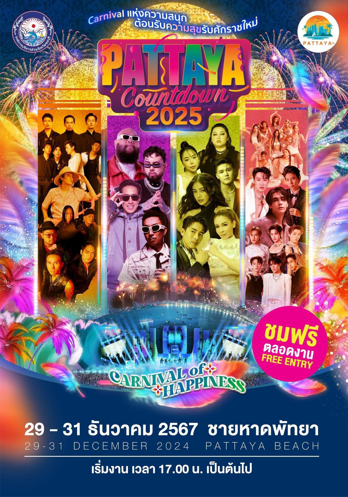 เตรียมพร้อมส่งมอบความสุขในช่วงเทศกาลส่งท้ายปีเก่าต้อนรับปีใหม่ ให้กับชาวจังหวัดชลบุรีและจังหวัดใกล้เคียง ทั้งชาวไทยและชาวต่างชาติอย่างยิ่งใหญ่ โดยในปีนี้ได้เนรมิตรชายหาดพัทยาเป็นสถานที่จัดงานมหกรรมความบันเทิง “PATTAYA COUNTDOWN 2025” (พัทยา เคาท์ดาวน์ 2025) ในธีม “The Fantastic Beach” เพื่อเป็นการส่งเสริมและเผยแพร่การท่องเที่ยวเมืองพัทยา เพื่อยกระดับคุณภาพการท่องเที่ยวในพื้นที่สู่การท่องเที่ยวระดับโลก ภายในงานเต็มอิ่มกับกิจกรรมต่าง ๆ ตลอด 3 วัน 3 คืน พร้อมโปรดักชั่น แสง สี เสียง จัดเต็มอย่างยิ่งใหญ่