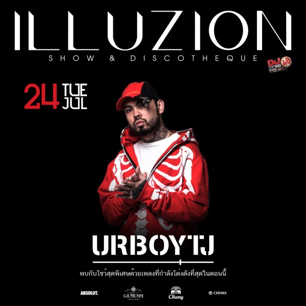 เตรียมตัวคุณให้พร้อม แล้วมามันส์กันแบบสุดๆ ไปกับเรา กับการกลับมาอีกครั้งของเขาที่ ILLUZION Phuket ของศิลปินฮิบฮอบ มาแรงแห่งยุค UrboyTJ กับวายร้ายที่สุดโอเค เจ้าของเพลงฮิตอย่าง ขี้แพ้ (LOSER), เค้าก่อน, วายร้าย และเพลงล่าสุดอย่าง "ไม่ตอบ" ที่มียอดวิวใน youtube ก็ไม่ต่ำกว่าล้านวิว