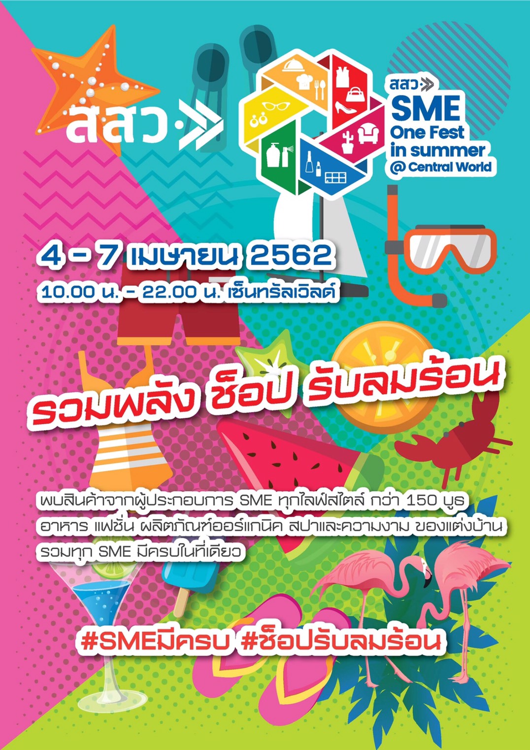 สสว. สานต่อความสำเร็จโครงการพัฒนาช่องทางการตลาดสำหรับผู้ประกอบการ SME ดึงผู้ประกอบการร่วมงานแสดงสินค้า ภายในงาน “SME One Fest In Summer@Central World” ระหว่าง 4-7 เมษายน 2562 นี้ ณ ศูนย์การค้าเซ็นทรัลเวิลด์ กรุงเทพฯ หวังกระตุ้นผู้ประกอบการธุรกิจ SME ให้เกิดการตื่นตัว ช่วยเพิ่มช่องทางสร้างรายได้ พร้อมพัฒนาสินค้าคุณภาพออกสู่ตลาด ตั้งเป้าผู้ร่วมชมงานมากกว่า 50,000 ราย