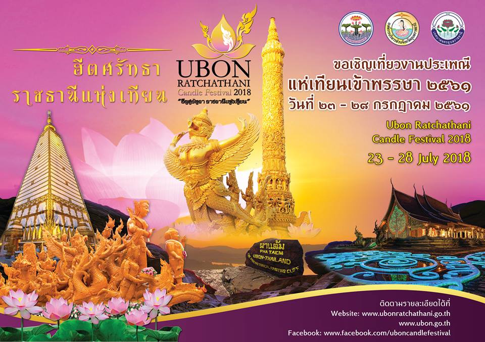 ขอเชิญเที่ยวงานประเพณีแห่เทียนเข้าพรรษาจังหวัดอุบลราชธานี ประจำปี 2561 "ฮีตศรัทธา ราชธานีแห่งเทียน" ระหว่าง 23 - 28 กรกฎาคม 2561