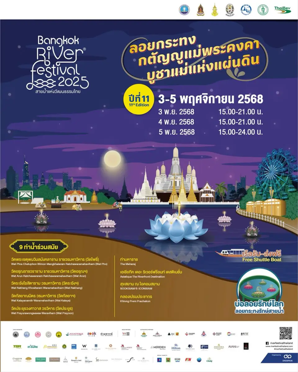 งาน Bangkok River Festival 2025 เทศกาลสายน้ำแห่งวัฒนธรรมไทย ปีที่ 11 "ลอยกระทงกตัญญูแม่พระคงคา บูชาแม่แห่งแผ่นดิน"
