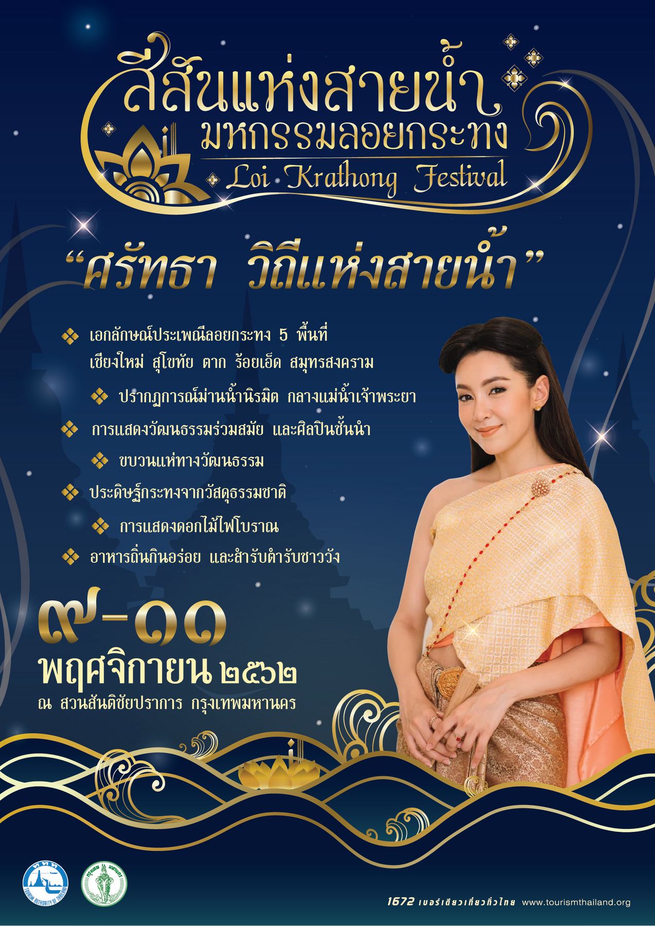 ขอเชิญร่วมสืบสานประเพณีลอยกระทง และอนุรักษ์วัฒนธรรมไทยในงาน "เทศกาลสีสันแห่งสายน้ำ มหกรรมลอยกระทง" ณ สวนสันติชัยปราการ กรุงเทพฯ วันที่ 9 – 11 พฤศจิกายน 2562 เวลาสี่โมงเย็นถึงเที่ยงคืน