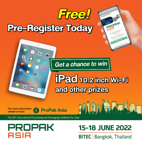 Get a chance to win iPad 10.2 inch Wi-Fi, just Pre-register Today! and attend ProPak Asia 2022, 15-18 June at BITEC, Bangna