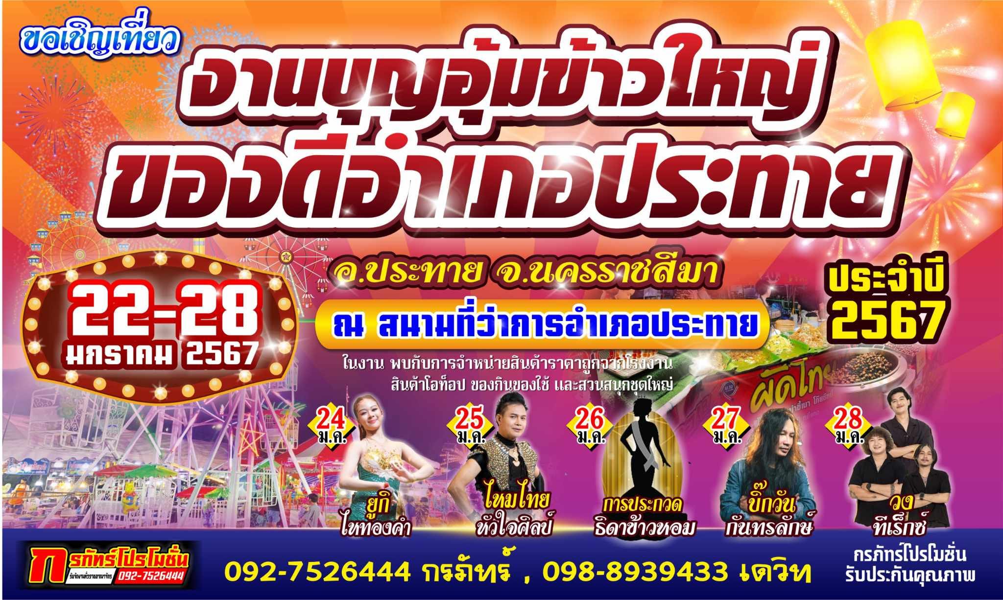 ขอเชิญเที่ยวงาน บุญกุ้มข้าวใหญ่ ของดีอำเภอประทาย อำเภอประทาย จังหวัดนครราชสีมา ประจำปี 2567