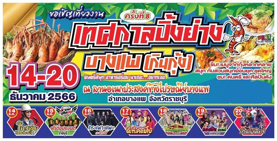 ขอเชิญเที่ยวงาน เทศกาลปิ้งย่าง บางแพ (กินกุ้ง) ครั้งที่ 8
