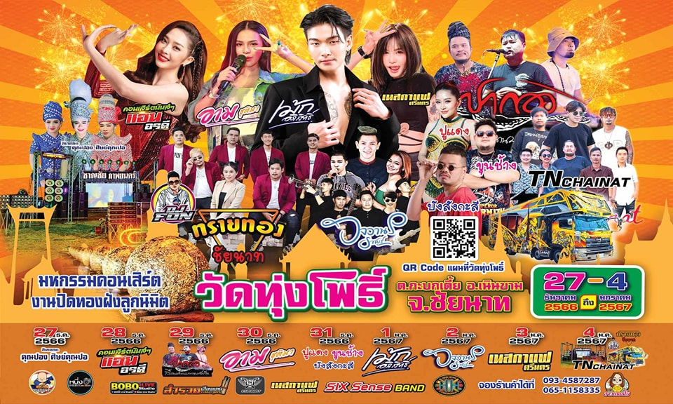 ขอเชิญเที่ยวงาน ปิดทอง ฝังลูกนิมิต ระหว่างวันที่ 27 ธันวาคม 2566 - 4 มกราคม 2567 ณ วัดทุ่งโพธิ์ ตำบลกะบกเตี้ย อำเภอเนินขาม จังหวัดชัยนาท