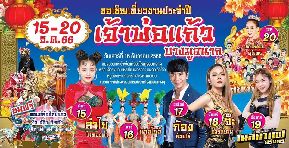 ขอเชิญเที่ยวงาน ประจำปี เจ้าพ่อแก้ว บางมูลนาก ระหว่างวันที่ 15 - 20 ธันวาคม 2566 ณ ศาลเจ้าพ่อแก้ว อำเภอบางมูลนาก จังหวัดพิจิตร