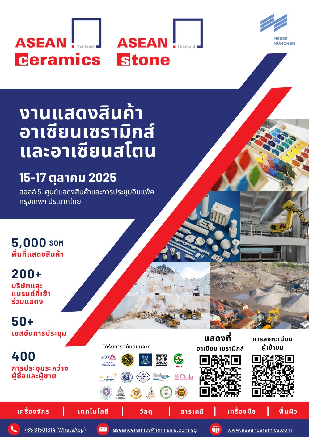 ร่วมพูดคุย เพื่อร่วมเป็นส่วนหนึ่งของงานแสดงสินค้านานาชาติที่ใหญ่ที่สุด งานเดียวในเอเชียตะวันออกเฉียงใต้ ที่มุ่งเน้นด้านเทคโนโลยี กระบวนการผลิดในอุตสาหกรรมเซรามิกและ อุตสาหกรรมหินธรรมชาติ