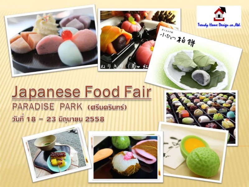 บริษัท เทรนดี้ โฮม ดีไซน์ จำกัด ร่วมกับ ศูนย์การค้า PARADISE PARK (ศรีนครินทร์) จัดกิจกรรม เพื่อเป็นการส่งเสริมการขายภาคเอกชน ในชื่อ งาน Japanese Food Fair วันที่ 18 - 23 มิถุนายน 2558 (เป็นเวลา 6 วัน) เวลา 10.00 - 21.30 น. ณ บริเวณชั้นที่ 1 พื้นที่ Royal Park Plaza ศูนย์การค้า PARADISE PARK