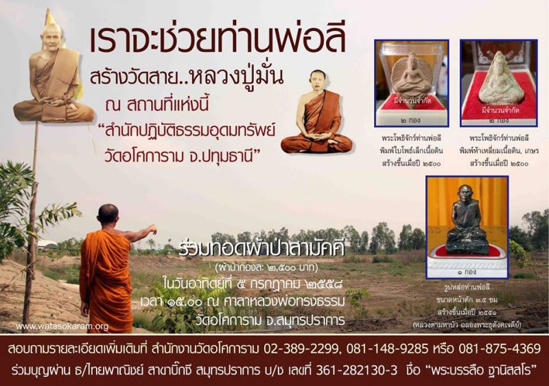 5 กค.58 งานทอดผ้าป่าสร้างวัดสายหลวงปู่มั่น สำนักปฏิบัติธรรมอุดมทรัพย์ วัดอโศการาม จ.ปทุมธานี ณ ศาลาหลวงพ่อทรงธรรม วัดอโศการาม