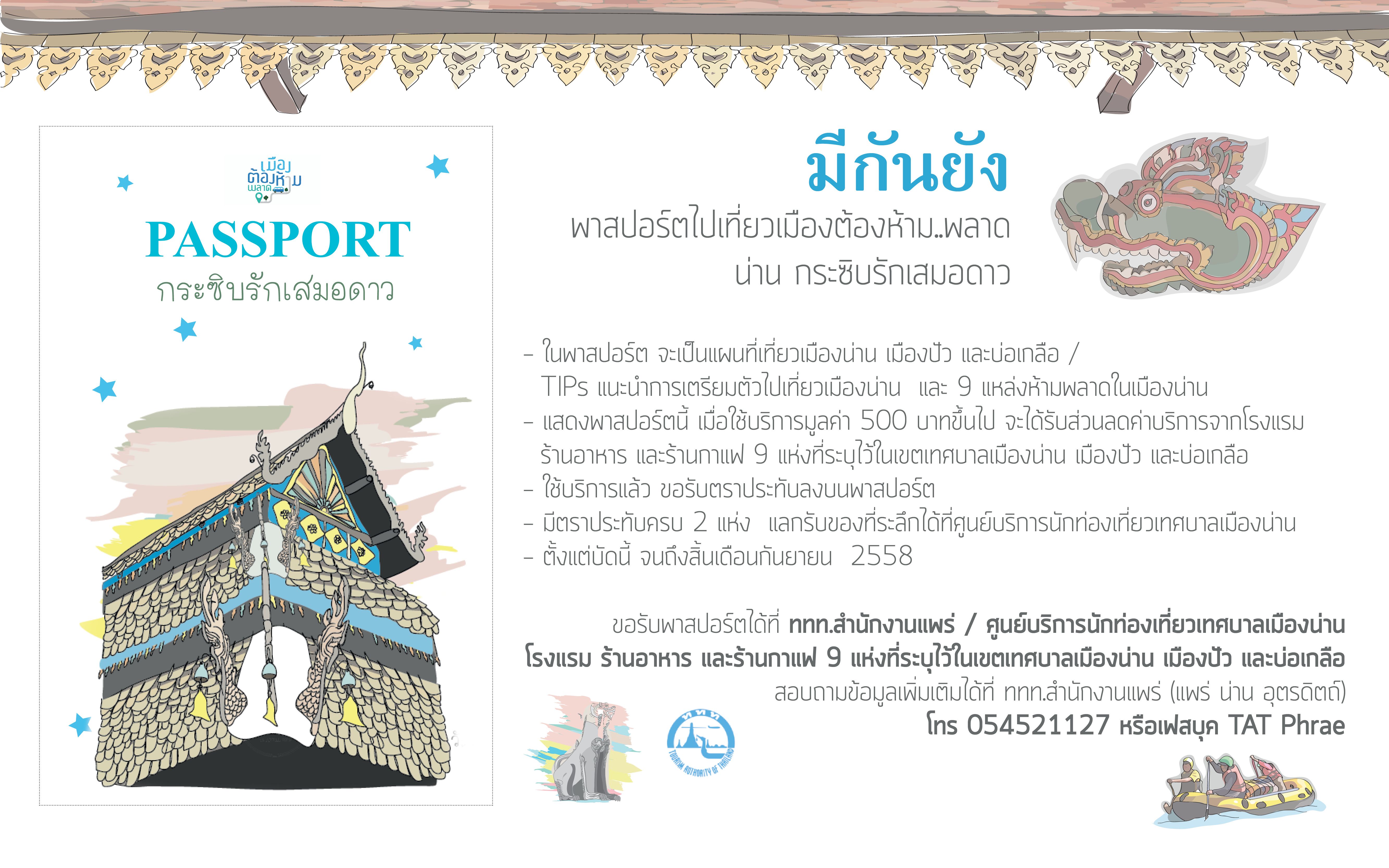 ททท. สำนักงานแพร่ ขอเชิญชวนนักท่องเที่ยวเดินทางท่องเที่ยวน่าน และร่วมสนุกกับกิจกรรม “พาสปอร์ตกระซิบรักเสมอดาว” ตั้งแต่บัดนี้ ถึงเดือนกันยายน 2558 ณ สถานที่ท่องเที่ยวในจังหวัดน่าน
