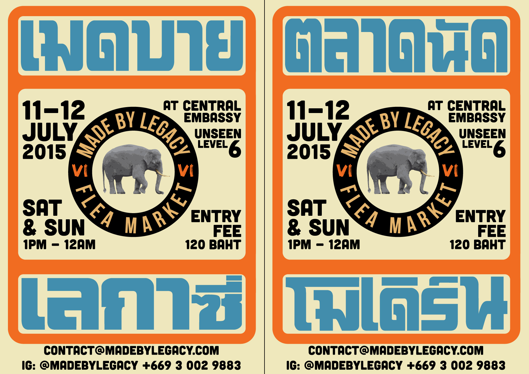 ตำนาน Flea Market “Made by Legacy” ผู้สร้างกระแสตลาดนัดโมเดิร์น ให้ผู้คนในเมืองไทยได้รู้จักกันอย่างล้นหลาม ได้กลับมาอีกครั้งแล้วในวันที่ 11 -12 ก.ค. 2558 เป็นครั้งแรก ณ พื้นที่ไซต์ก่อสร้างของห้างหรู ชั้น 6 เซ็นทรัล เอ็มบาสซี่ ที่ยังไม่เคยมีใครเคยเห็นมาก่อน